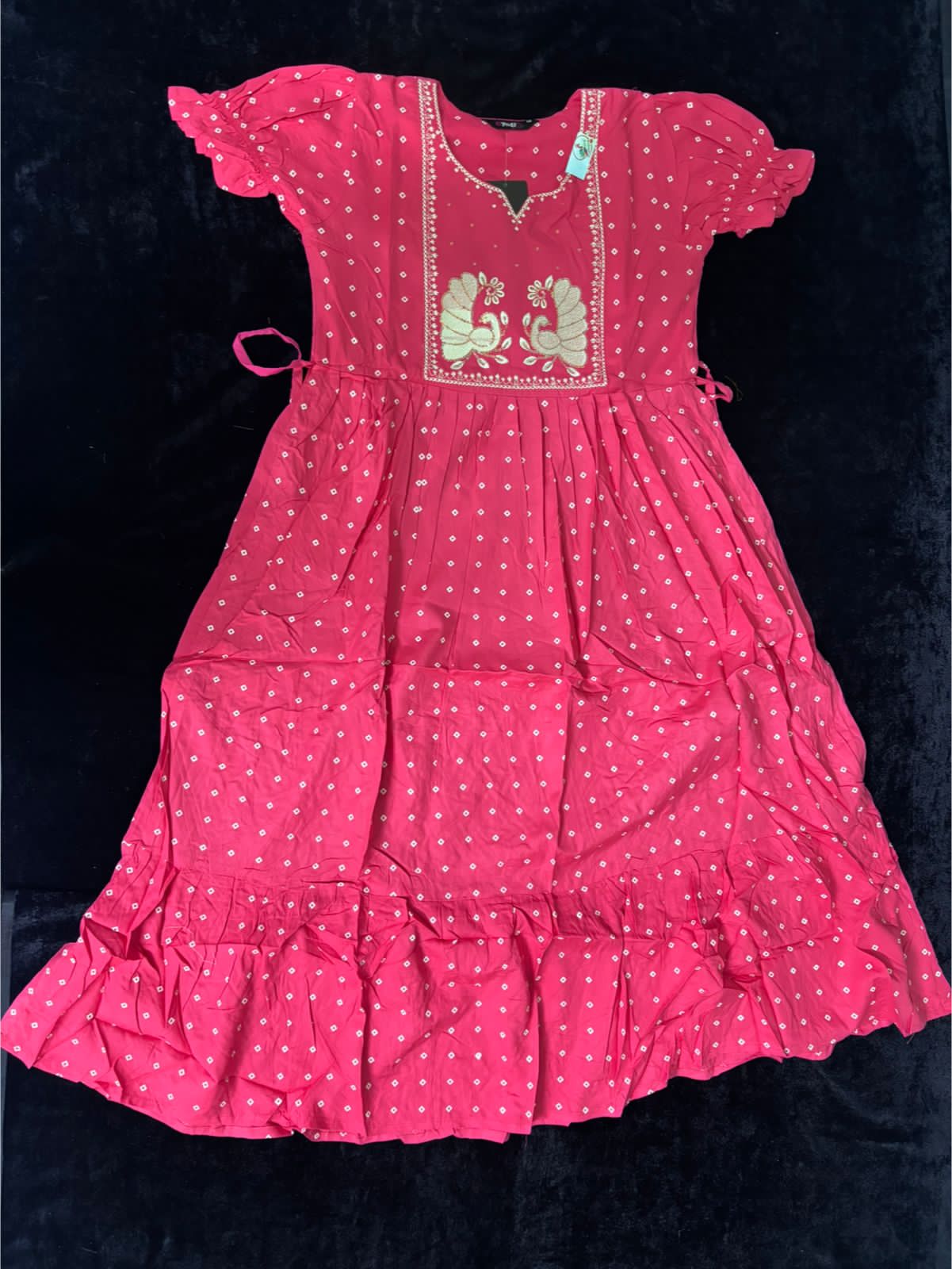 Cotton pink frock with embroidery work. Available in M, L, XXL