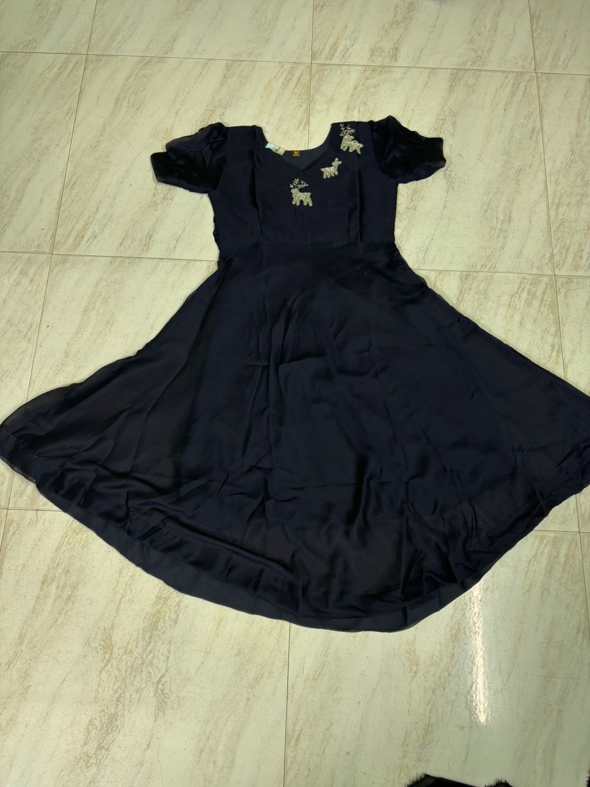 Navy blue color frock with beeds dear work. Available in M, L, XL, XXL