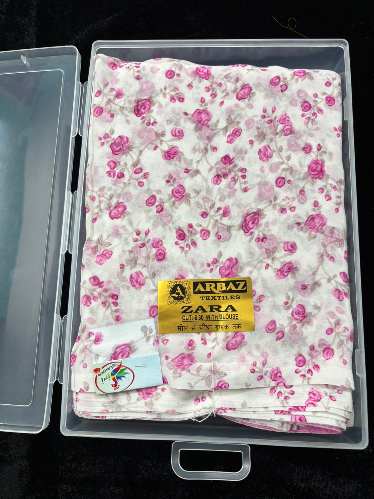The fabric is georgette with pink color floral pattern