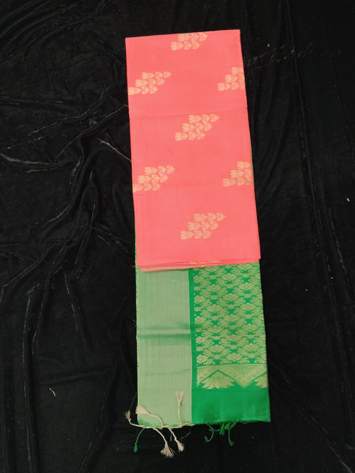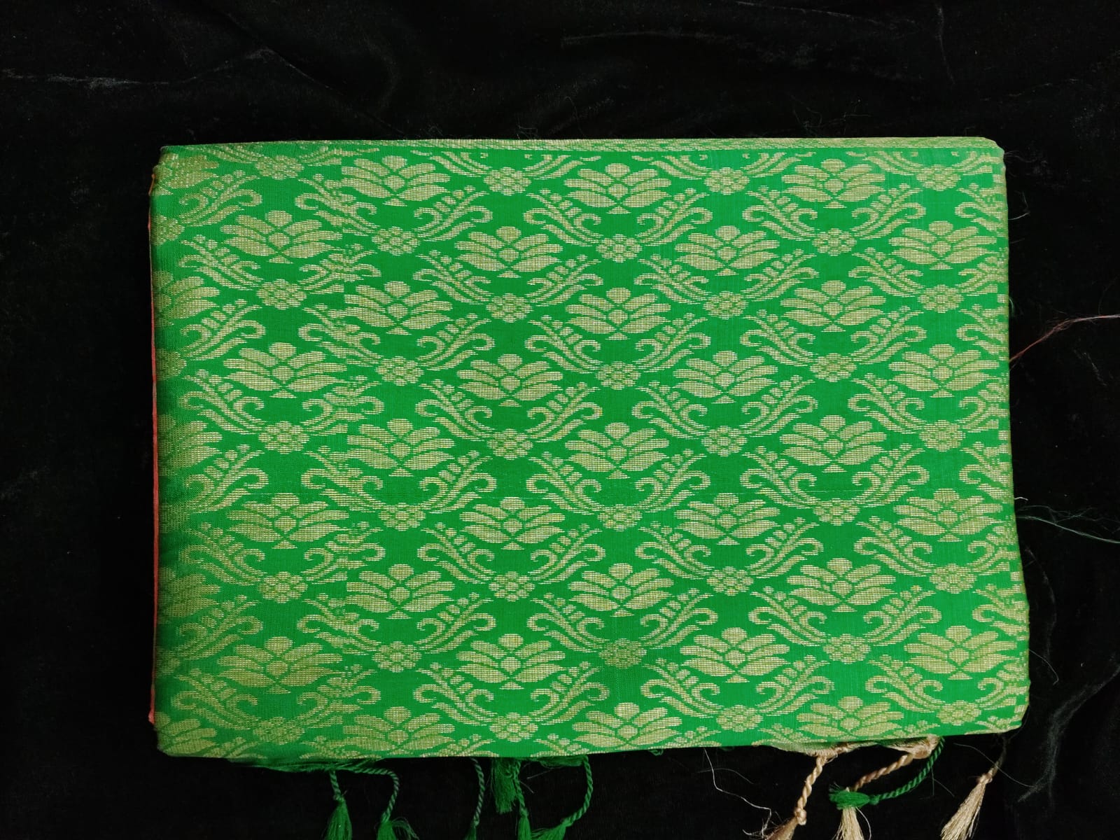 Green and kanakambaram color Uppada pattu saree with gold Zari work