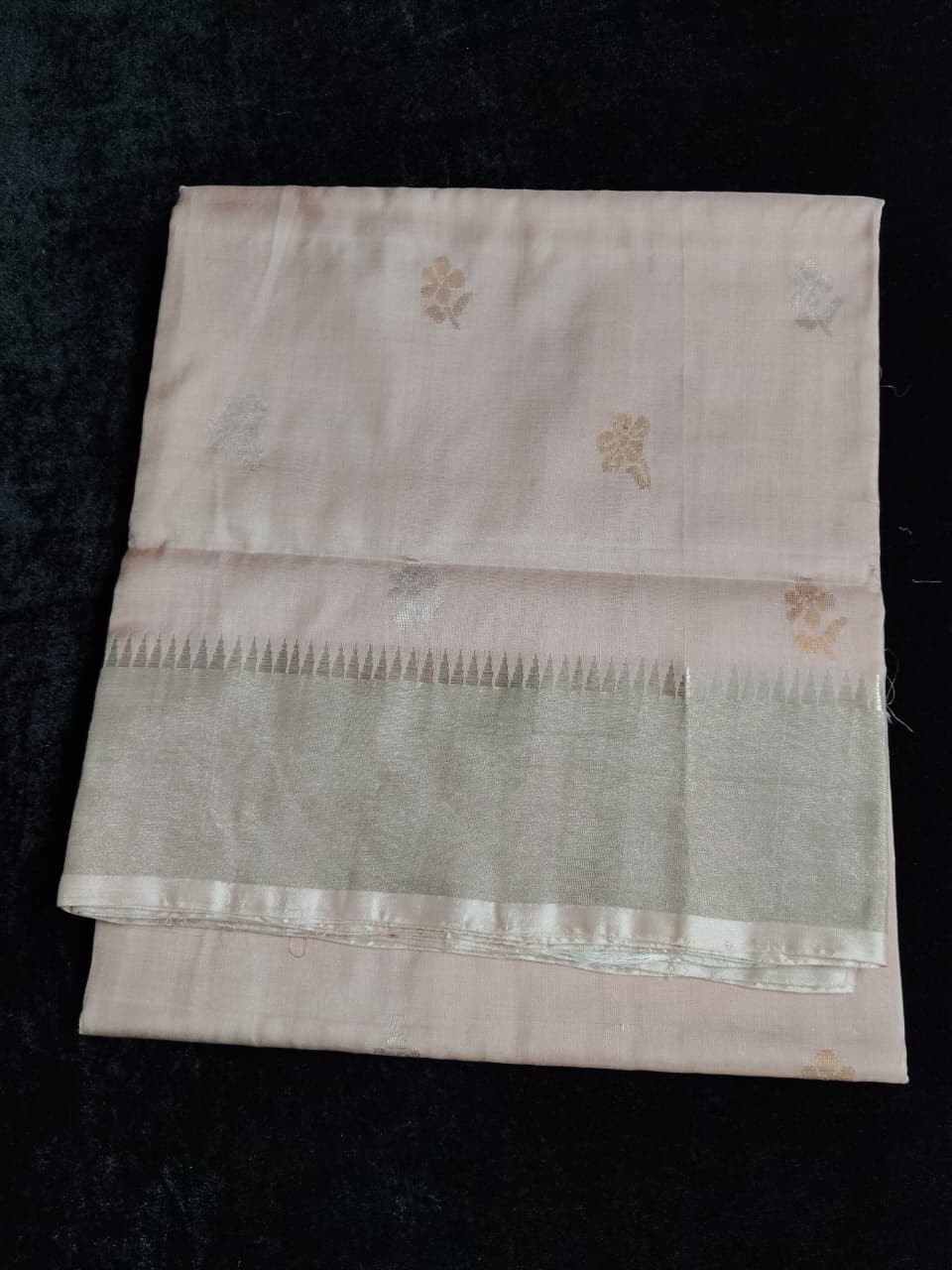 Very lite pink color Uppada pattu saree with temple butta Zari work