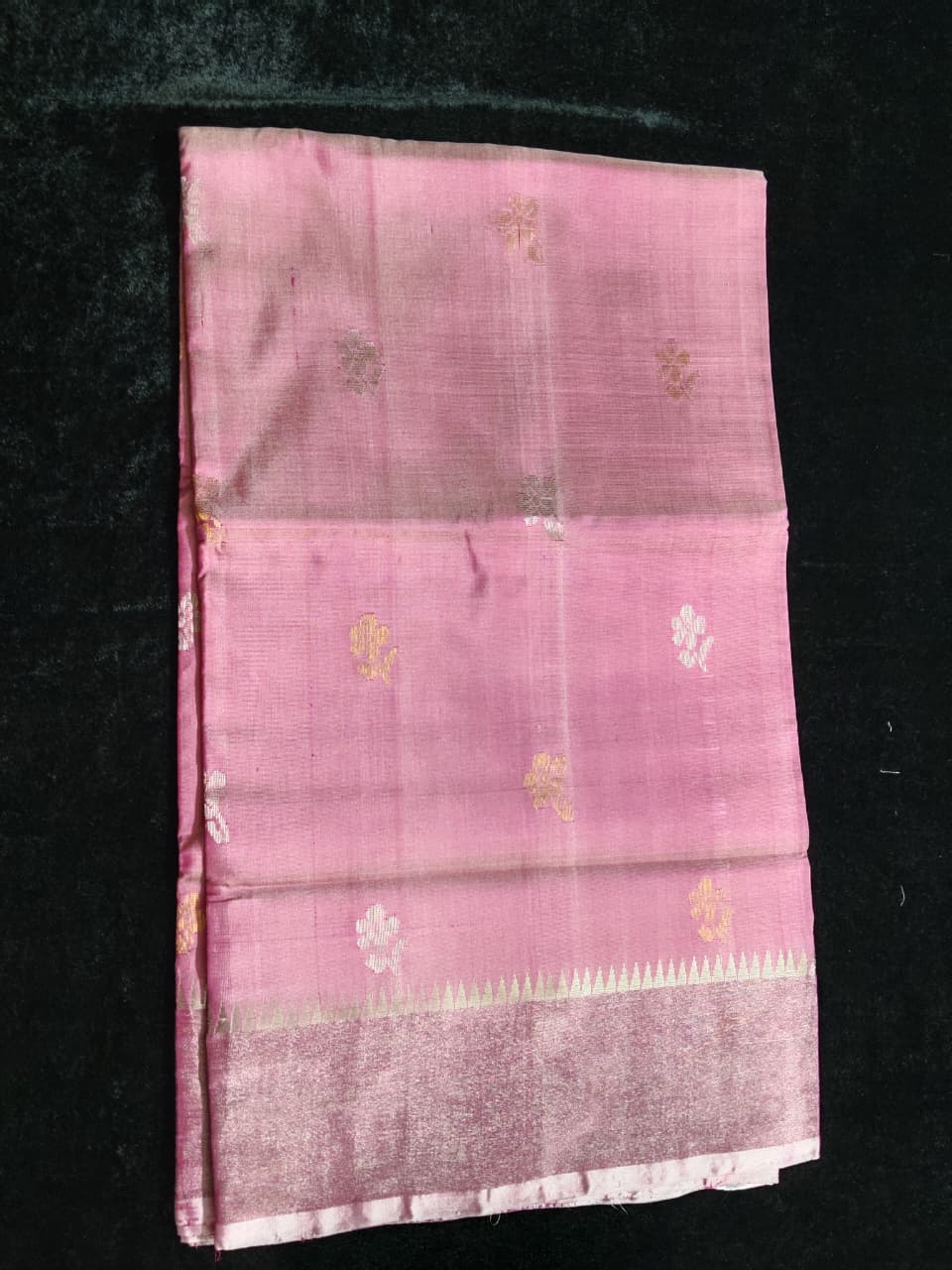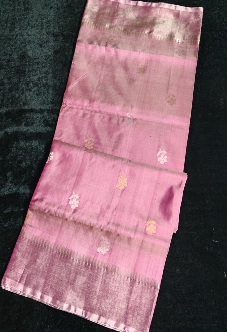 Baby pink color Uppada pattu saree with temple butta silver Zari work