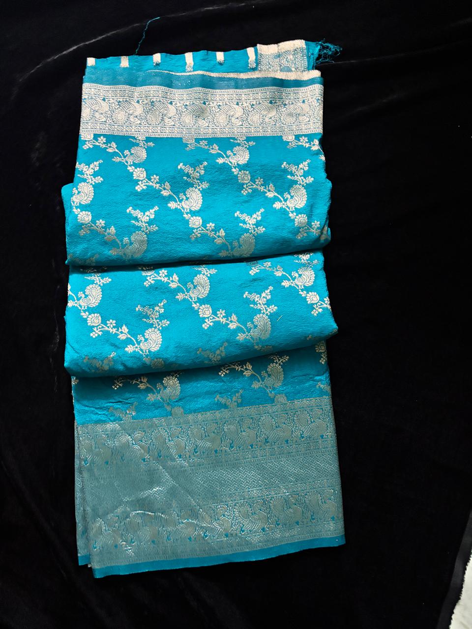 Banarasi silk saree with rich gold Zari floral and grand elaborate border and opulent traditional Indian look