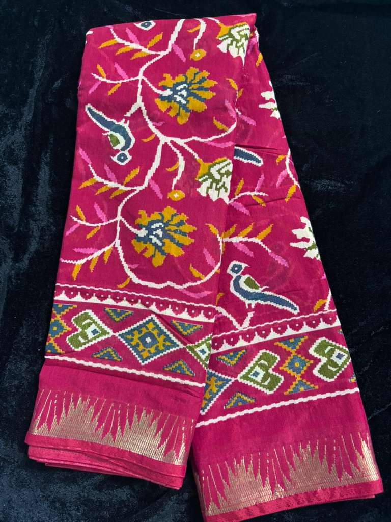 These are Ikat silk sarees recognized for its bright colors, traditional motifs, and distinctive Ikat weaving technique