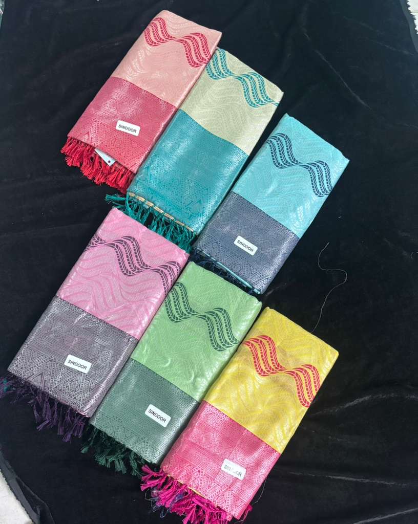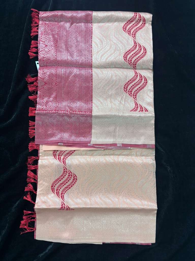 Banarasi saree with wave- patterned Zari work and tassels on the border