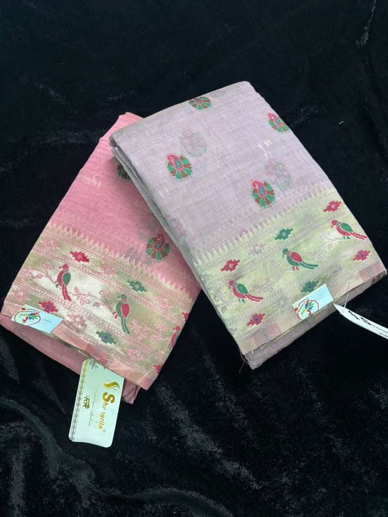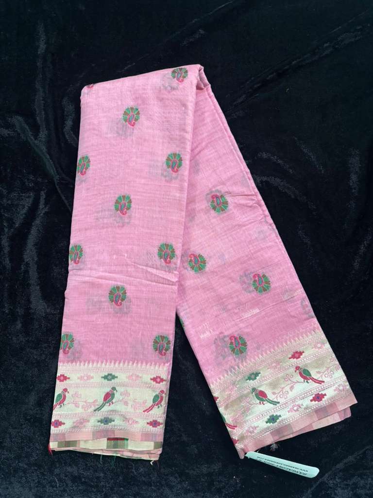 Handloom sarees with small floral motifs and parrot designs on the pallu