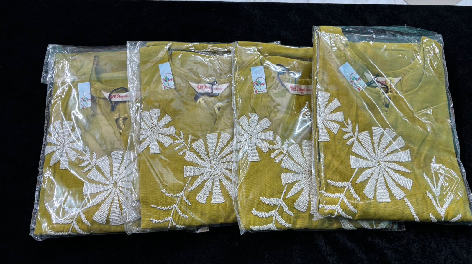 Mustard yellow color with embroidery work cotton slub 2p set . Available in M, L, XL, XXL