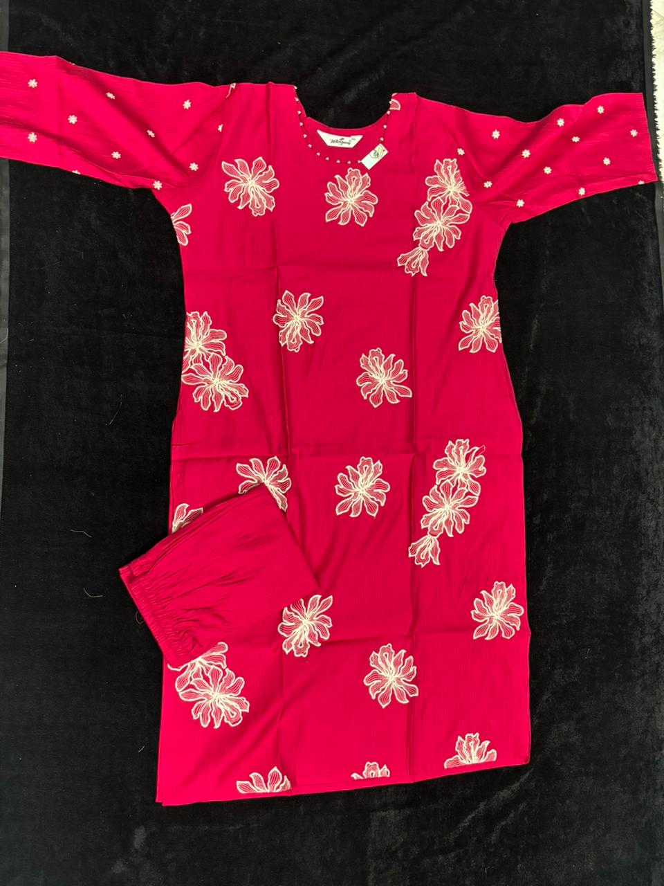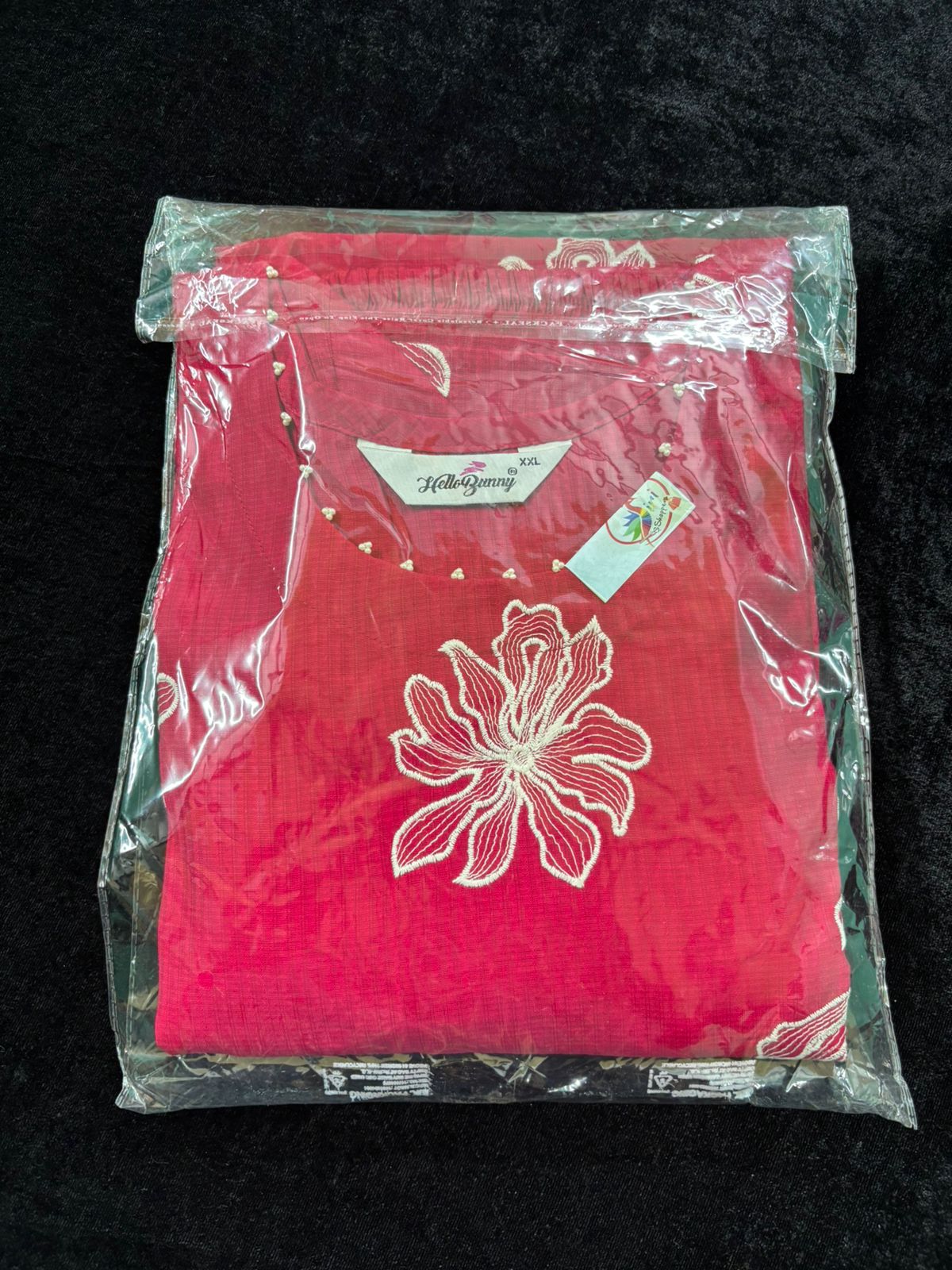 Cotton kurti set Featuring white floral embroidery work. Available in XXL