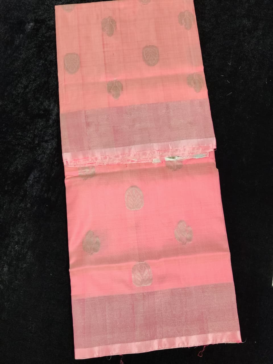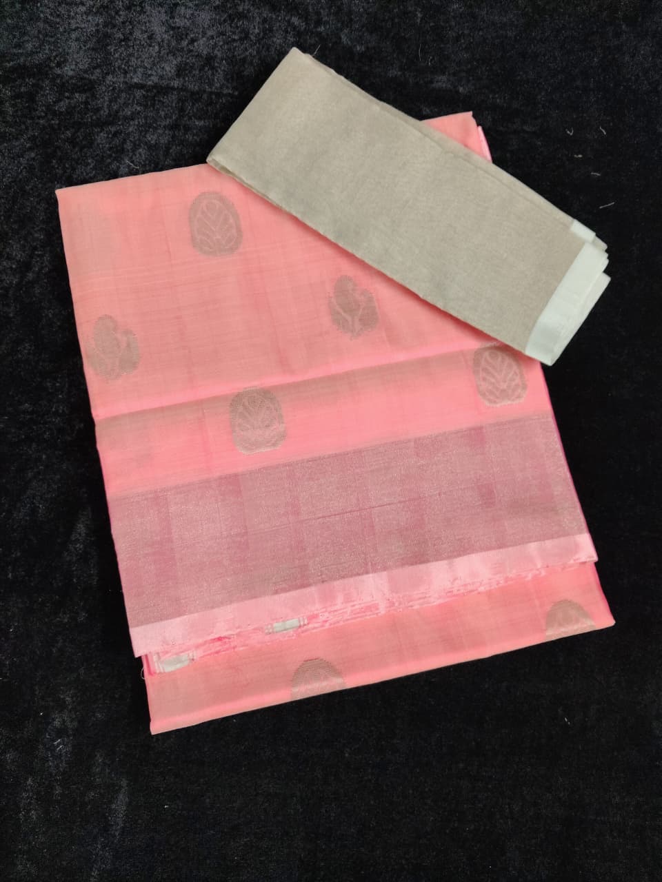 Pink color uappada pattu saree with silver dollaar butta Zari work