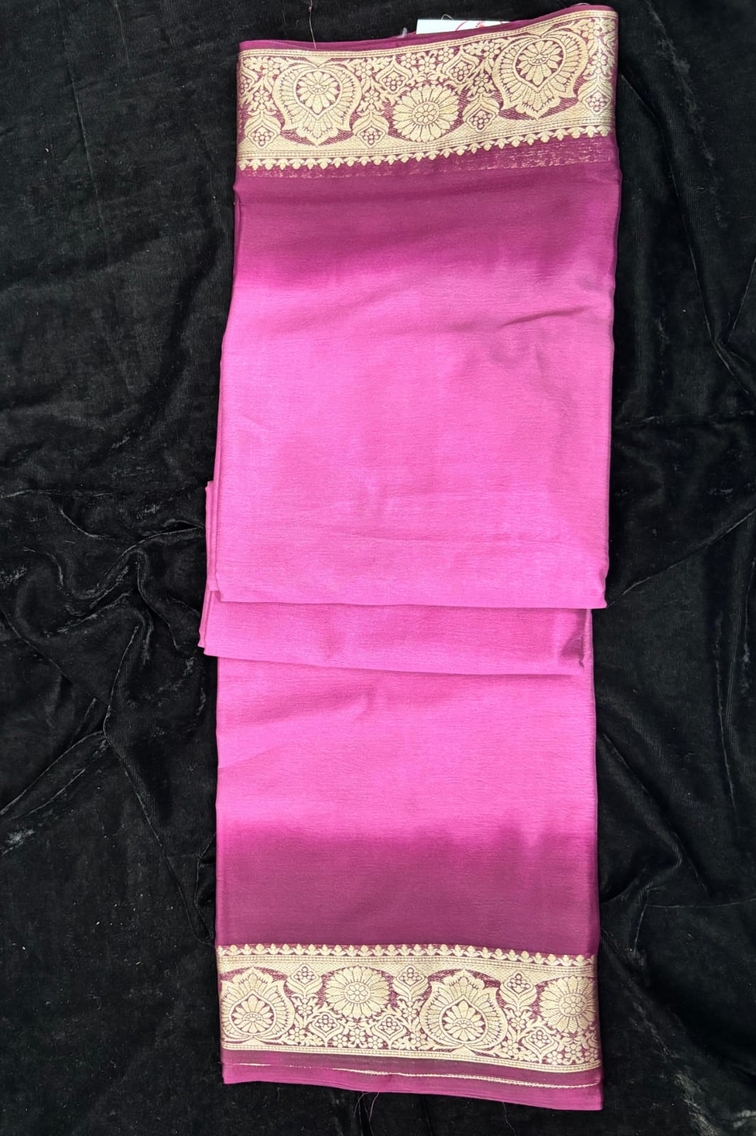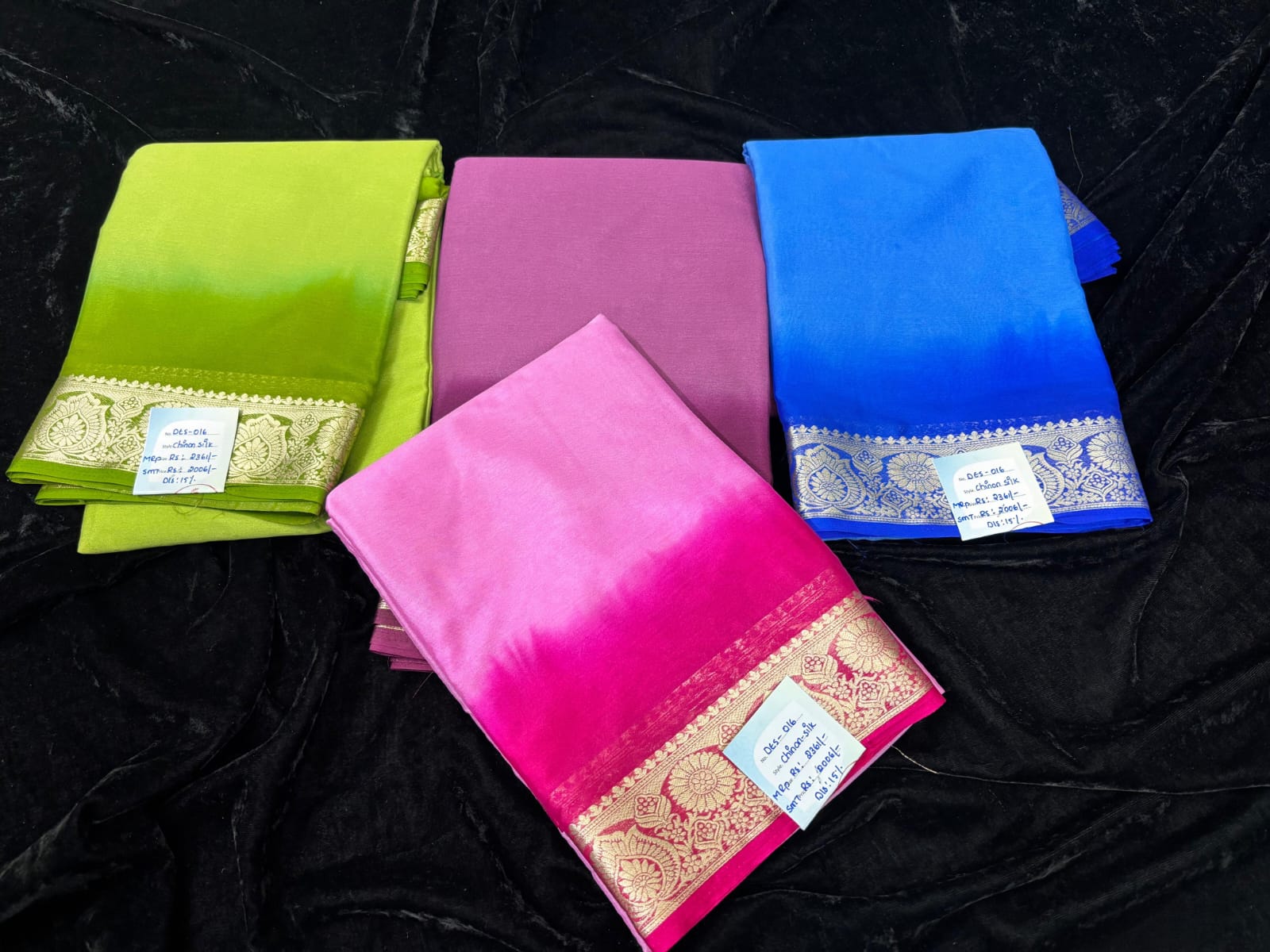 Name ; Chinnon Material : Silk Fabric : Light weight Design : Double ShadeSh gold zari work border Pallu : Self with duble shade Blouse : Plain self runnih blouse