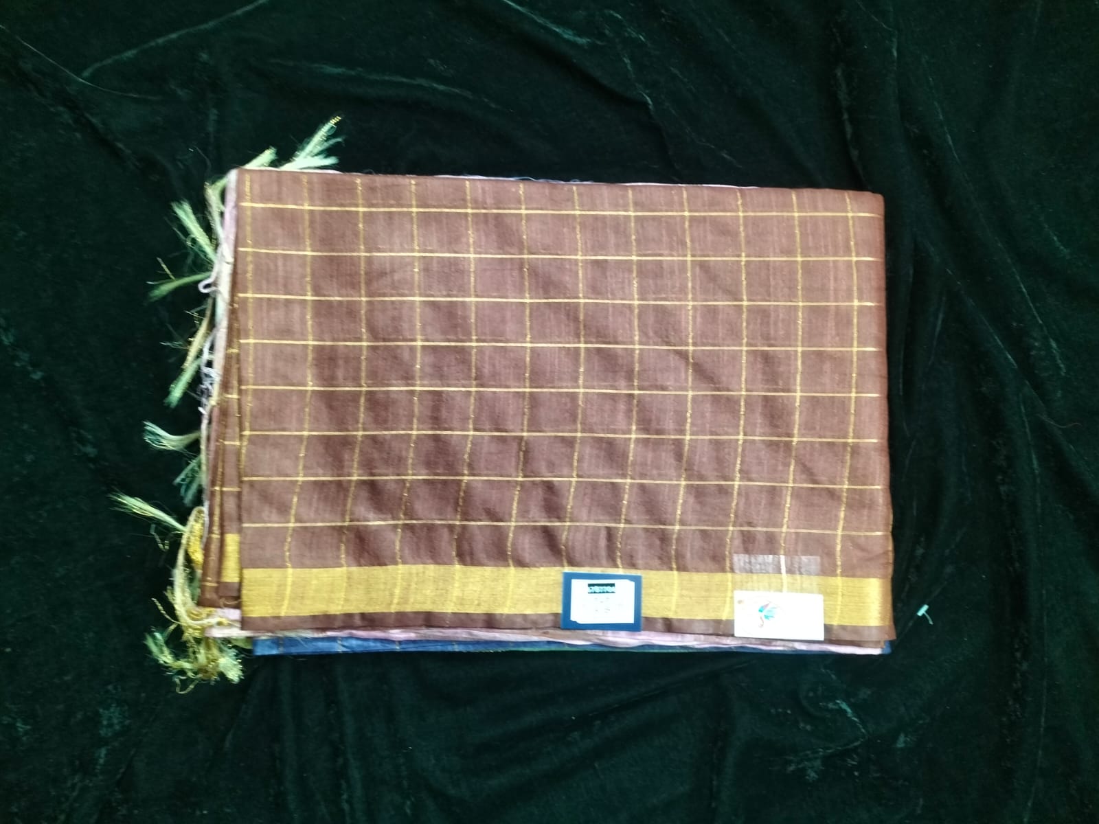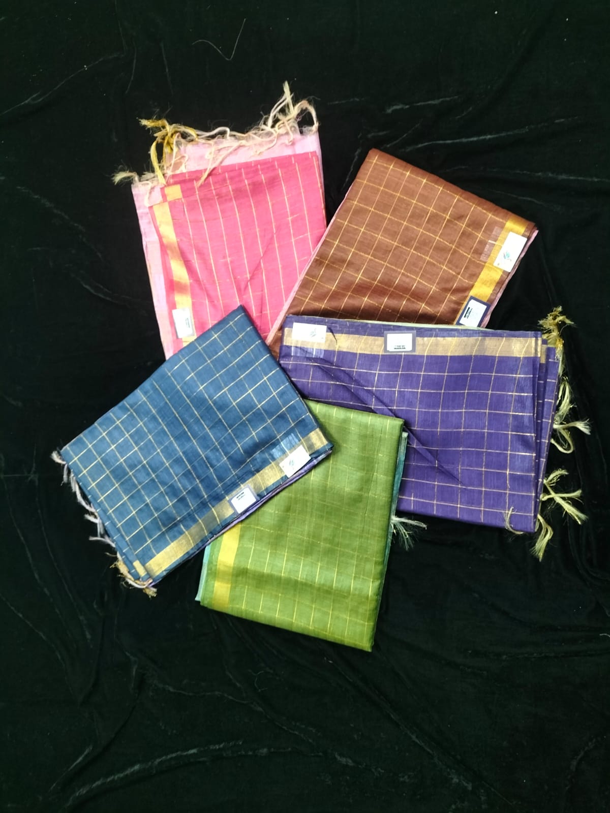 Name : Mangala Giri cotton Material : Cotton Fabric : Light weight Design : Gold Zari boxes pattern Pallu : Contrast Pallu Blouse : Self