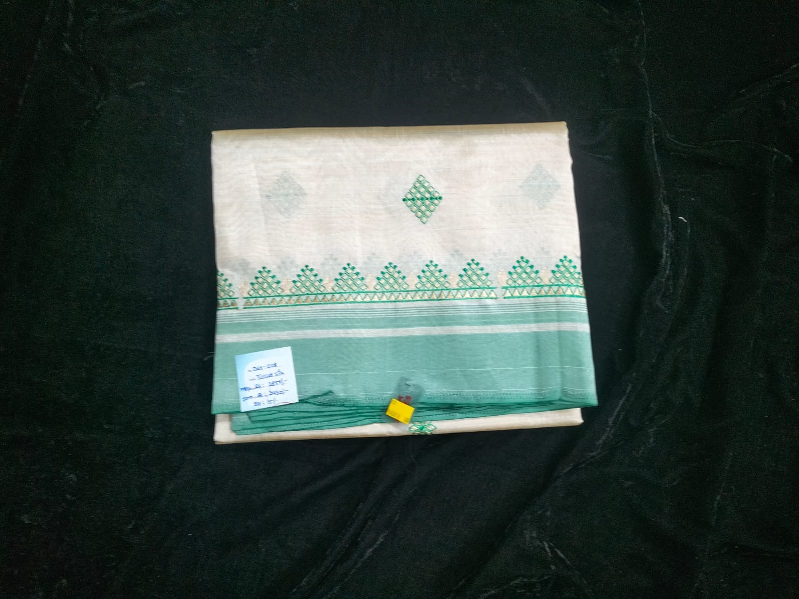 Name : Tussar Material : Silk Fabric : Light weight Design : Embroidery design Pallu : Self with contrast color border Blouse ; Self