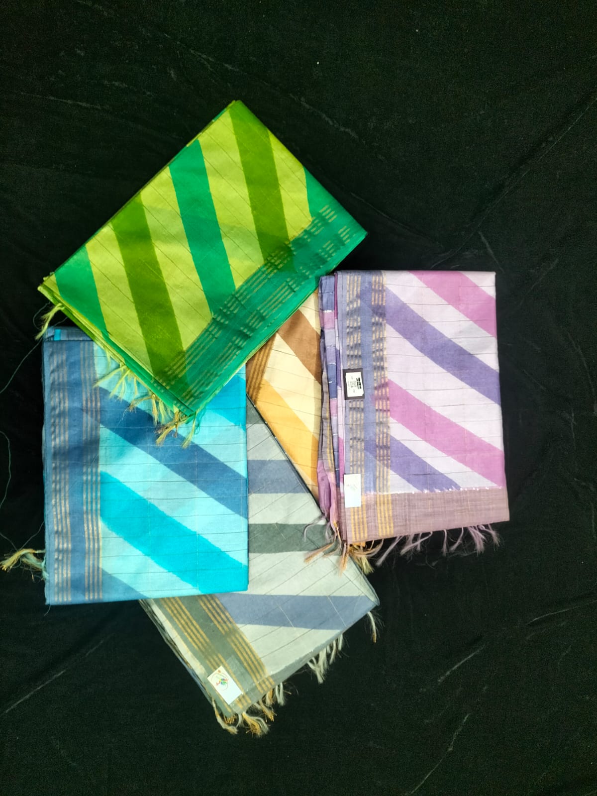 Name : Tisue silk Material : Silk Fabric : Tissue Desing : Gold zari border Pallu : Contrast Blouse : Contrast