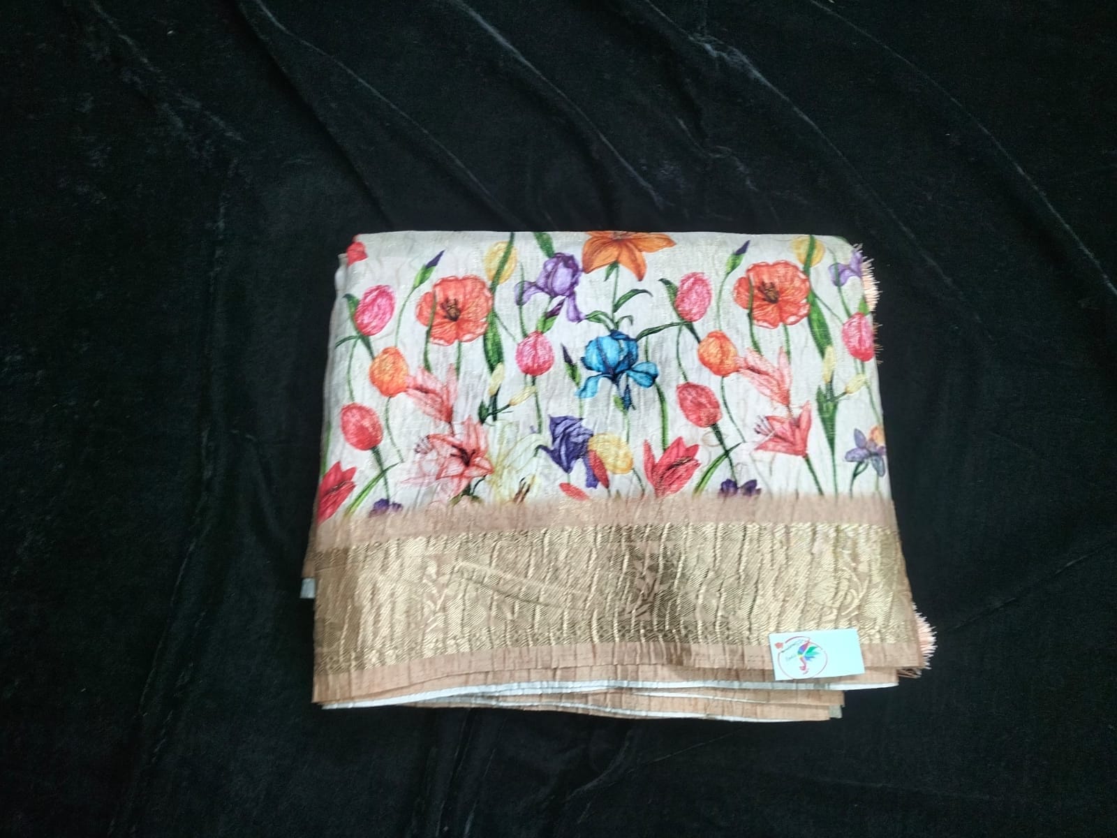 Name : Art silk Material : Silk Fabric : Soft Design : Printed design Pallu : Self Blouse : Contrast