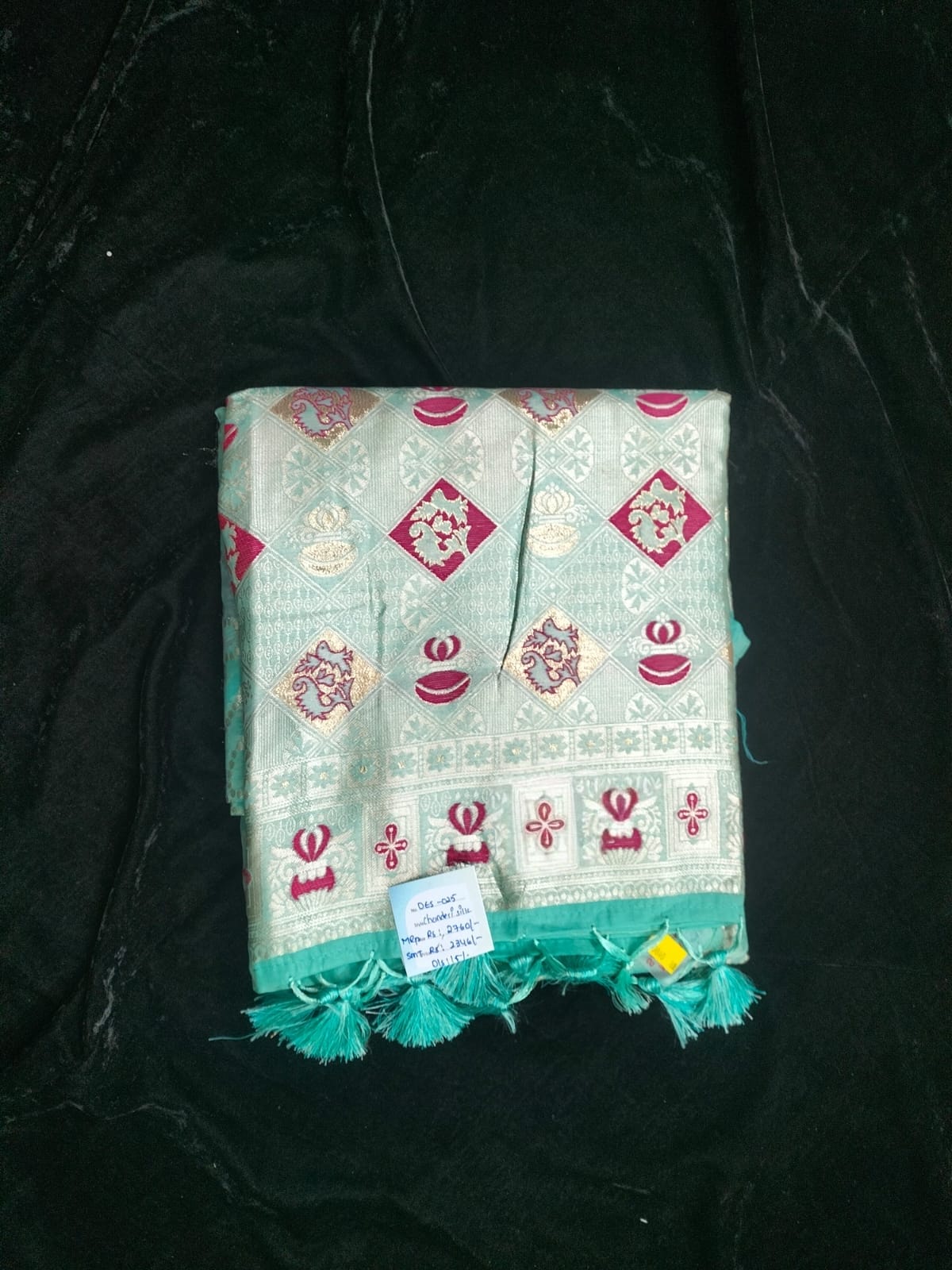 Name : Chanderi silk Material : Silk Fabric : Pattu Design : Jacquard design with all-over zari weaving Pallu : Self Blouse : Plain self