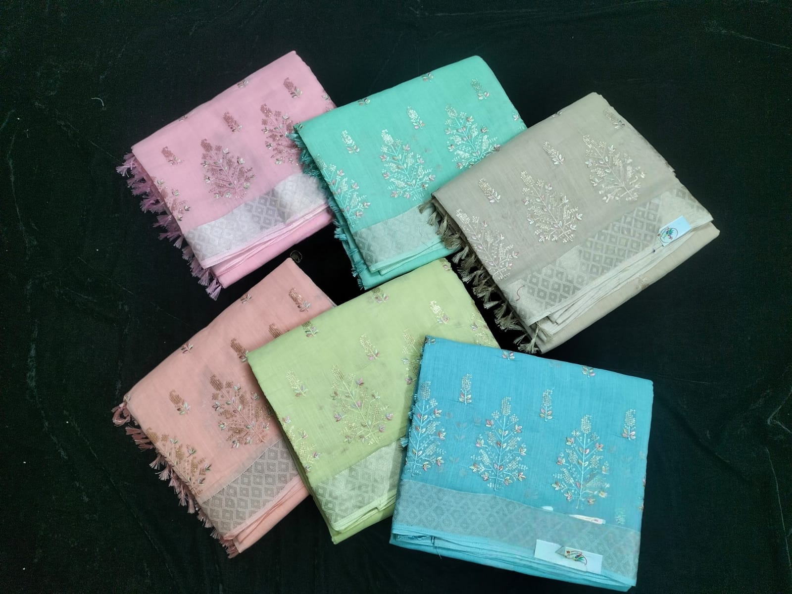 ame : Lenin Material : Silk Fabric : Blend Design : Embroidery work Pallu : Self Blouse : Self running blouse