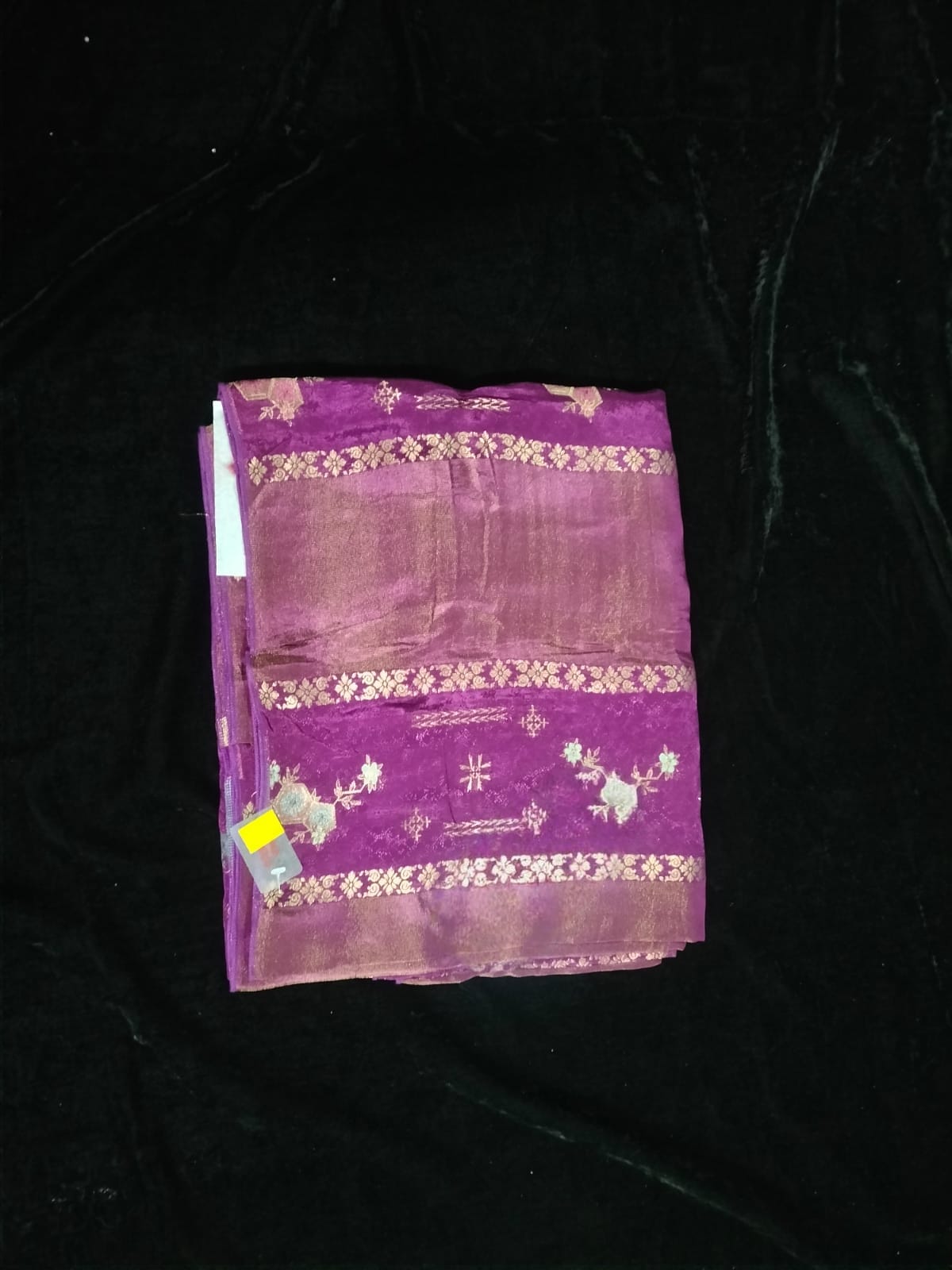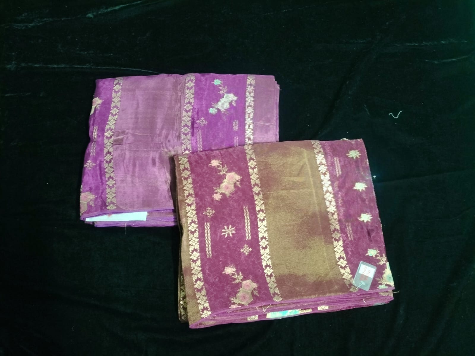 Name : Chinon silk Material : Silk Fabric : Soft Design : Gold Zari floral design Pallu ; Self Blouse : Self