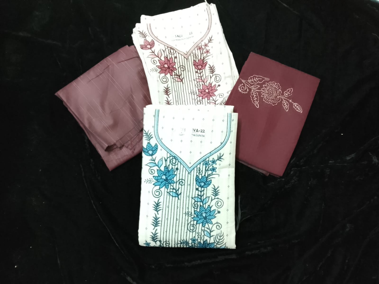 Name : Dress material Material : Cotton Fabric : Soft Design : Embroidery design Dupatta : embroidery designed dupatta